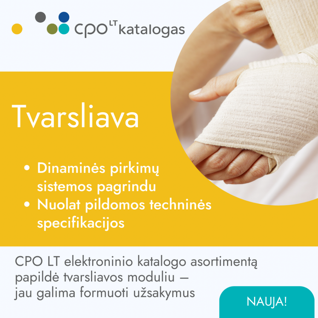Perkančiosios organizacijos gali formuoti užsakymus šioms prekių grupėms: gipsiniams tvarsčiams, nesterilioms neaustinio pluošto servetėlėms, gipsinių tvarsčių pamušalams, steriliems tinkleliniams tvarsčiams.