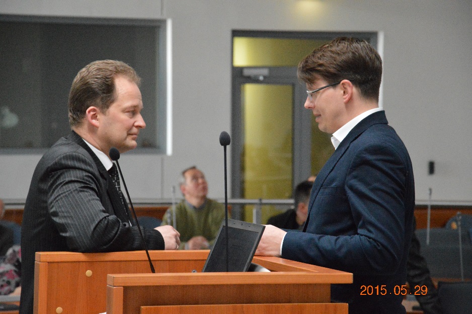 CPO LT direktorius Rolandas Černiauskas (kairėje) ir Vilniaus m. savivaldybės viešųjų pirkimų skyriaus vedėjas Giedrius Krasauskas