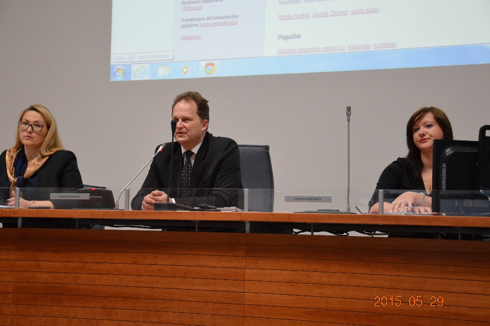 2015 m. gegužės 29 d. Vilniaus miesto savivaldybėje įvyko susitikimas su įmonių, organizacijų, švietimo ir medicinos įstaigų specialistais, vykdančiais viešuosius pirkimus. CPO LT direktorius Rolandas Černiauskas, direktoriaus pavaduotoja Vaida Vaitkevičiūtė- Daugvilė, vyriausioji pirkimų vadovė Laima Vilemaitė, konsultantas Artūras Maruškevičius pristatė CPO LT vaidmenį ir uždavinius vykdant centralizuotus viešuosius pirkimus.