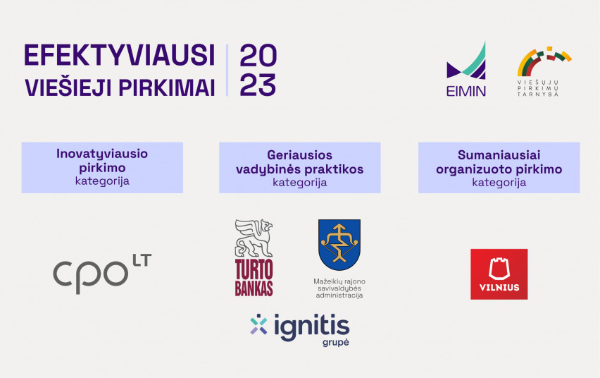Ekonomikos ir inovacijų ministerija kartu su Viešųjų pirkimų tarnyba išrinko penkias organizacijas ir įmones, kurios 2023 m. inovatyviausiai ir sumaniausiai vykdė viešuosius pirkimus bei taikė geriausią vadybinę praktiką.