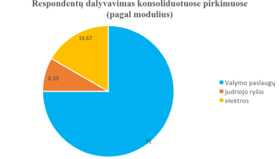 CPO LT atliko tiekėjų, dalyvavusių valymo paslaugų, judriojo ryšio ir elektros konsoliduotuose pirkimuose, apklausą. Jos tikslas buvo išsiaiškinti respondentų vertinimą konsoliduotų pirkimų: ar šis pirkimo būdas įtakoja kainų pokyčius, ar tiekėjams patogu ir paprasta teikti pasiūlymus atnaujintam varžymuisi CPO LT elektroninėje sistemoje, ar iškilus klausimams jie gauna visą būtiną pagalbą iš darbuotojų. Anketas užpildė 12 tiekėjų, dalyvavusių konsoliduotuose pirkimuose (1pav.). Respondentų buvo prašoma atsakyti į 17 klausimų.