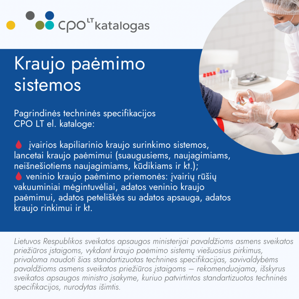 Sveikatos srities perkančiosios organizacijos gali efektyviai ir skaidriai įsigyti pagal standartizuotas technines specifikacijas siūlomų kraujo paėmimo sistemų per CPO LT elektroninį katalogą.