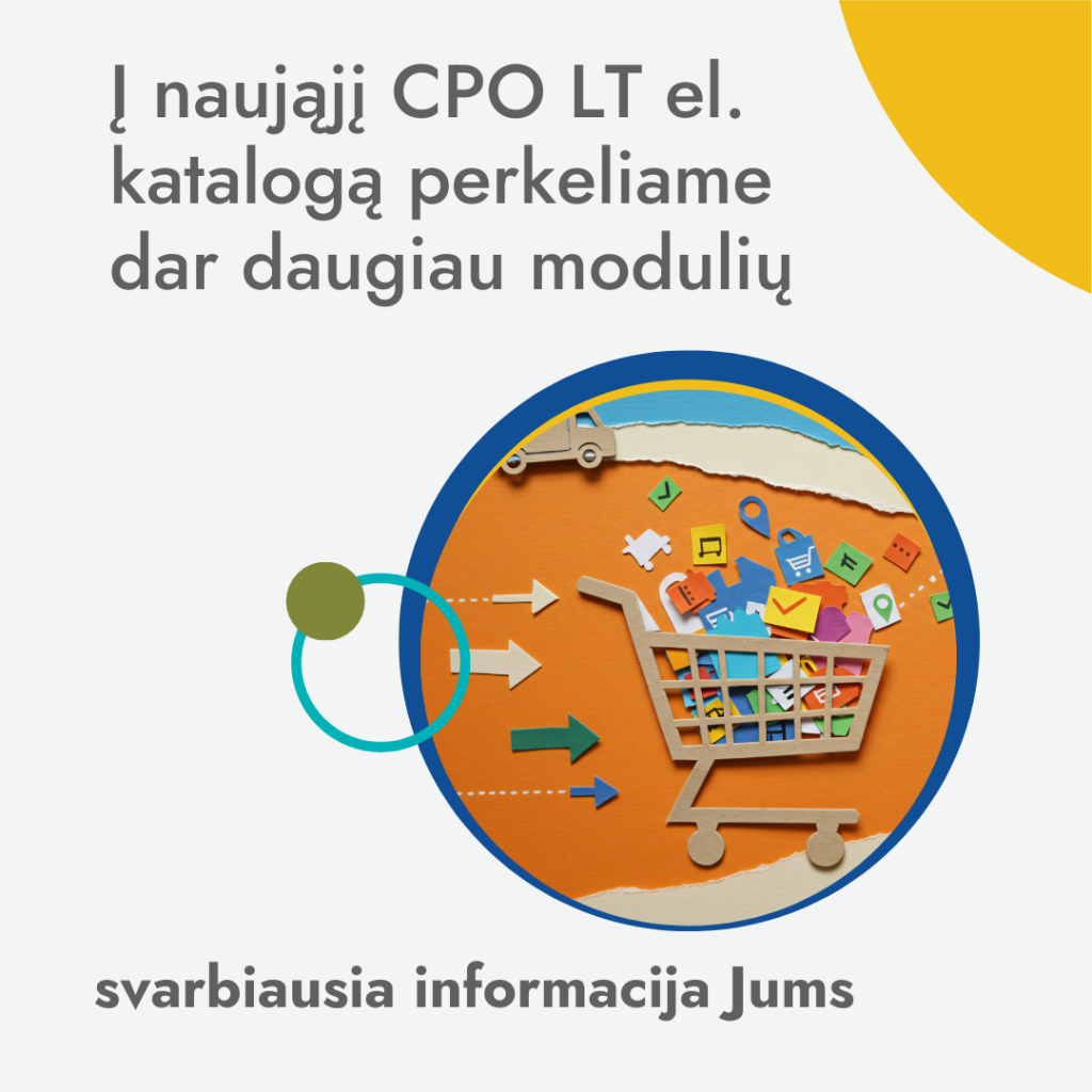 Perkeliami moduliai bus išjungiami senajame kataloge ir pirkimai juose nebevyks, todėl svarbu, kad nuosekliai atliktumėte registracijos naujoje sistemoje bei kitus reikiamus veiksmus, siekiant Jūsų nenutrūkstamo dalyvavimo CPO LT el. katalogo pirkimuose.