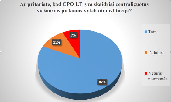 VšĮ CPO LT, įgyvendindama kovos su korupcija 2017-2019 metų programą, siekdama užtikrinti veiklos skaidrumą, į apklausos anketą įtraukė klausimą apie perkančiųjų organizacijų CPO LT veiklos vertinimą. Respondentų buvo prašoma pareikšti nuomonę, „ar jie pritaria, kad CPO LT yra skaidriai centralizuotus viešuosius pirkimus vykdanti institucija?“ (4 pav.).
