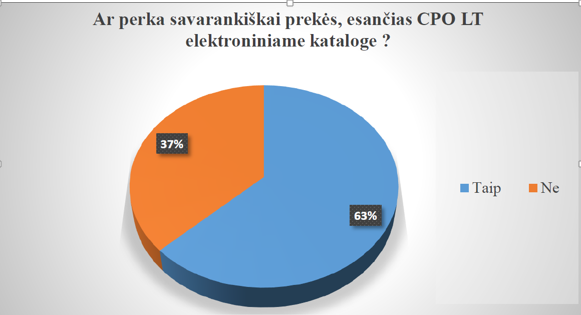Apklausa parodė, kad net 63 proc. respondentų tokias prekes pirko savarankiškai (2 pav.). Jie įvardijo objektyvias priežastis, dėl kurių perkančiosios organizacijos nesinaudojo centralizuota viešųjų pirkimų sistema: